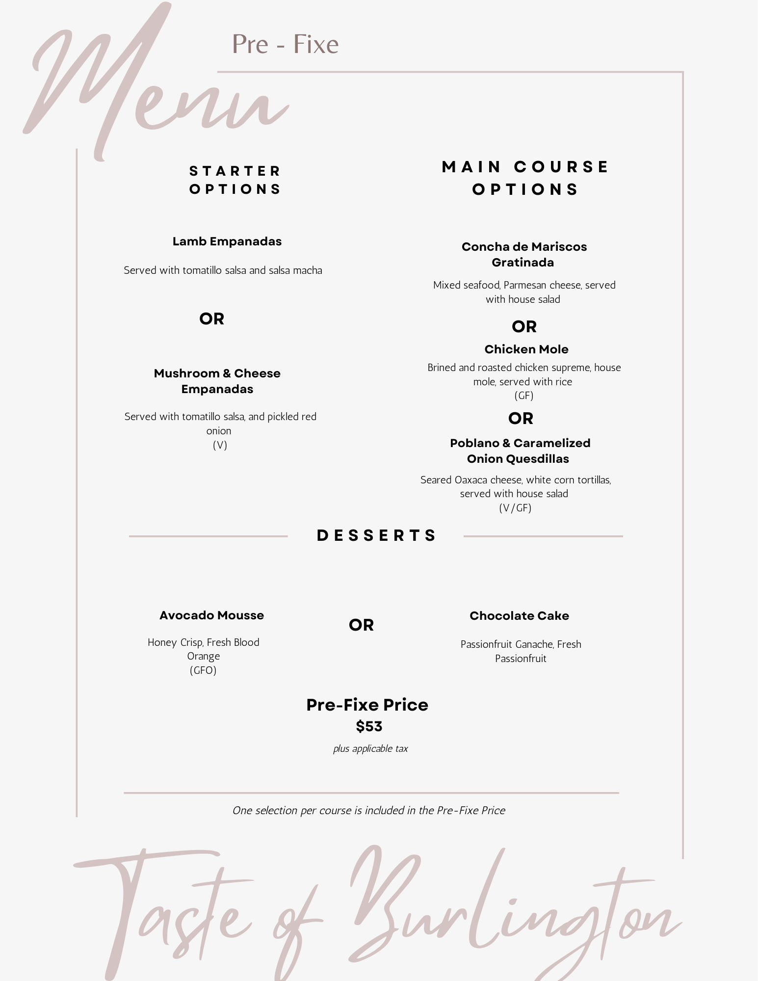 All options below include two tacos served on organic non-GMO white corn tortillas producted right here in Ontario!